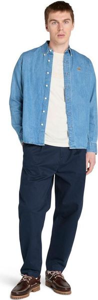 "The Timberland men's denim shirt combines stylish design with the highest level of comfort and is perfect for everyday wear and leisure. Made from a high-quality material blend of 67u202f% cotton and 33u202f% TENCELu2122yocell, the shirt not only offers a soft texture, but also excellent breathabilityu00e4t and freedom of movement. The regular fit ensures a classic look, while the button-down collar and full-length button placket lend the shirt a timeless elegance."