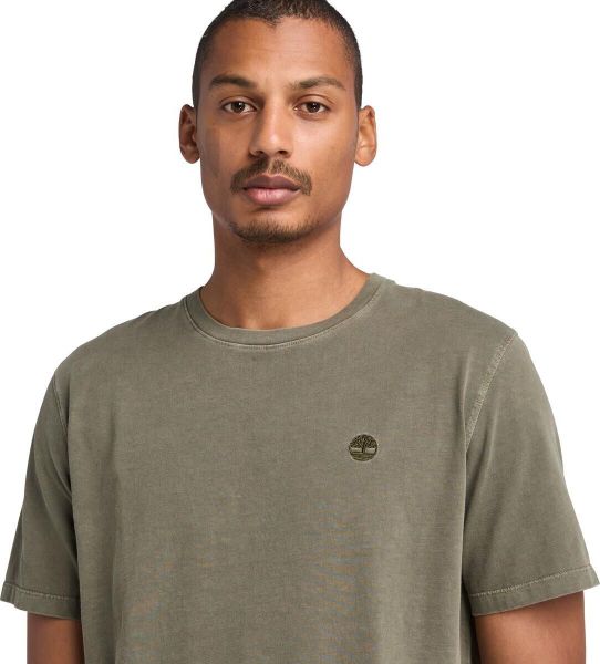 "Discover the perfect T-shirt for everyday life and your leisure activitiesu00e4ten. The Timberland men's short sleeve shirt combines sustainability and style by being made from 100% organically grown cotton. This cotton comes from farms that do not use genetically modified seeds, making it an environmentally friendly choice. The stitch-dyed fabric gives each shirt a unique colorway, while the embroidered Baum logo adds a subtle but striking detail."