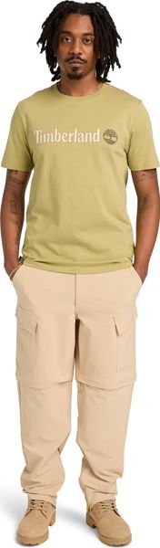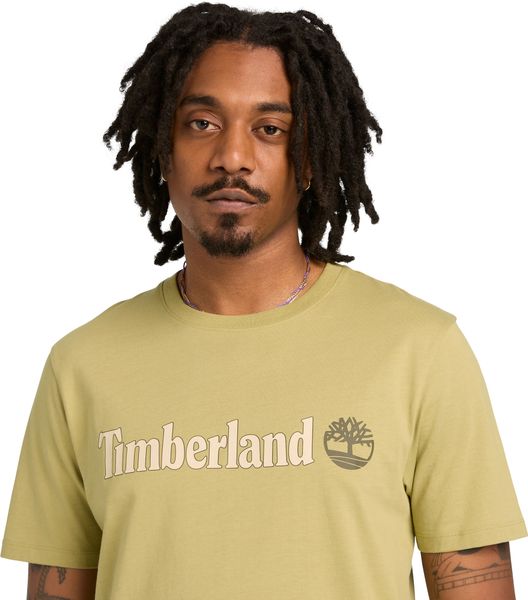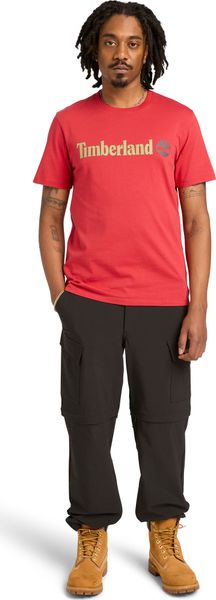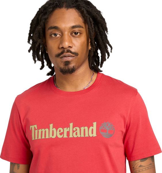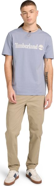 "With a weight of 175 g/mu00b2, the T-shirt is lightweight yet robust, making it a durable companion for urban and work-related activities. The linear logo print on the front gives the shirt a modern touch, while the flag label and logopigment print provide the characteristic Timberlandbranding."