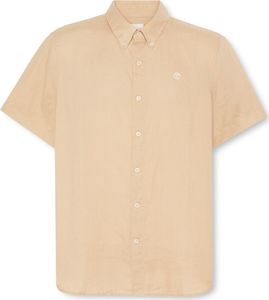 This slim-fit linen shirt for men convinces with a stand-up collar, round cuffs, contrasting piping and logo embroidery on the chest.