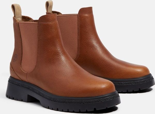 "The stylish Cambria Valley Chelsea Boot for women from Timberland is the ideal companion for everyday wear and leisure. Made from high-quality Timberlandu00u00fc leather that is responsibly produced by the Leather Working Group, this boot not only offers an elegant look, but also a sustainable choiceu00fc. The slip-on design with double stretch inserts and a practical pull tab at the heel makes them easy to put on and take off."