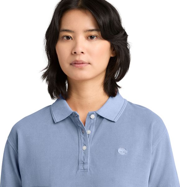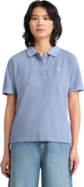 "The sturdy, short-sleeved piqué polo shirt for women from Timberland combines stylish elegance with casual comfort. Made from 100% cotton with a 245 g knitted fabric, this polo is comfortable to wear and has a high-quality finish. The classic polo collar and button fastening emphasize the timeless design, which cuts a fine figure both in the office and in your free time"