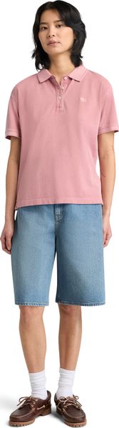"The sturdy, short-sleeved piqué polo shirt for women from Timberland combines stylish elegance with casual comfort. Made from 100% cotton with a 245 g knitted fabric, this polo is comfortable to wear and has a high-quality finish. The classic polo collar and button fastening emphasize the timeless design, which cuts a fine figure both in the office and in your free time"