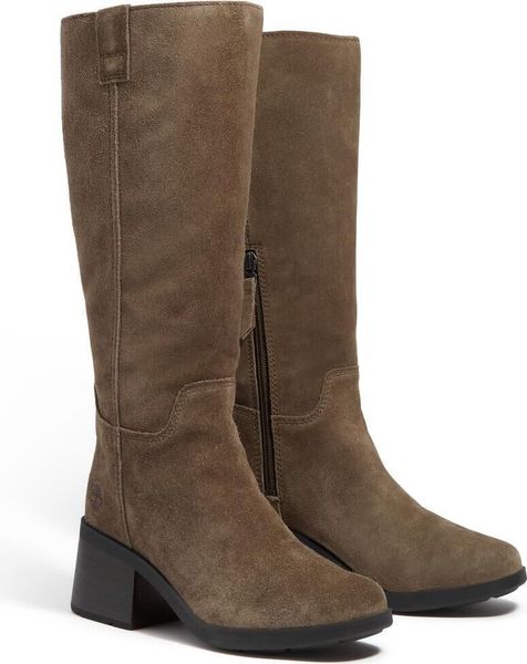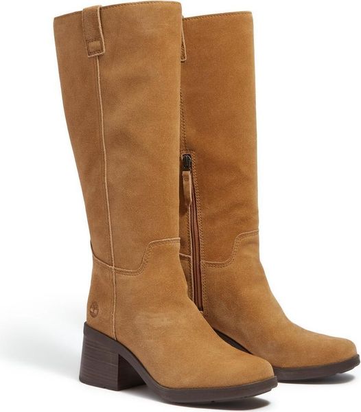 "The Bellevaux Tall Boot for women by Timberland is the perfect companion for a stylish fall wardrobe. Made from high-quality premium Timberland leather, this boot combines elegance and sustainability thanks to the innovative ReBOTLu2122 lining, which is made from at least 50u202f% recycled plastic. The side zipper makes them easy to put on and take off, while the robust rubber outsole ensures a secure grip on a variety of surfaces."