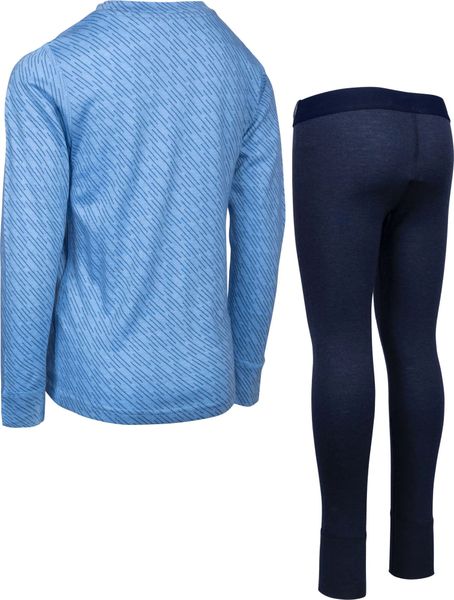 "Discover the Trespass Unisex Kids Merino-Woll-Underwearu00e4sche Set Alec, specially designed for ultimate comfort and warmth during outdooractivities. This set combines a stylish all-over print top with a plain-colored bottom for a modern and coordinated look. Thanks to the flat seams and seamless design, it is comfortable to wear without rubbing against the skin."