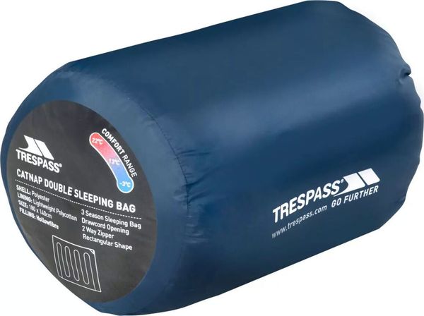 "Experience ultimate comfort when camping or on your leisure adventures with the Catnap DoubleSleeping Bag from Trespass. This sleeping bag is specially designed for two people and offers plenty of space to stretch out and relax with its generous dimensions of 180 cm x 140 cm.