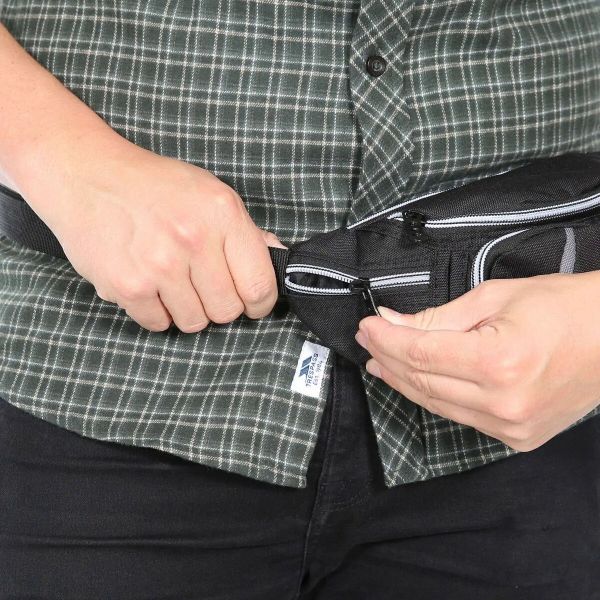 "The Trespass DAX bum bag is the ideal companion for all your adventures and, with its capacity of 2.5 liters, offers enough space for your most important utensils. Whether for hiking, traveling or everyday use, this bag impresses with its well thought-out layout and high level of comfort. With five practical zippered pockets, you can keep your small items such as keys, phone or wallet perfectly organized and safe. The internal organizer also ensures that you always have an overview and don't have to search for your things for long."