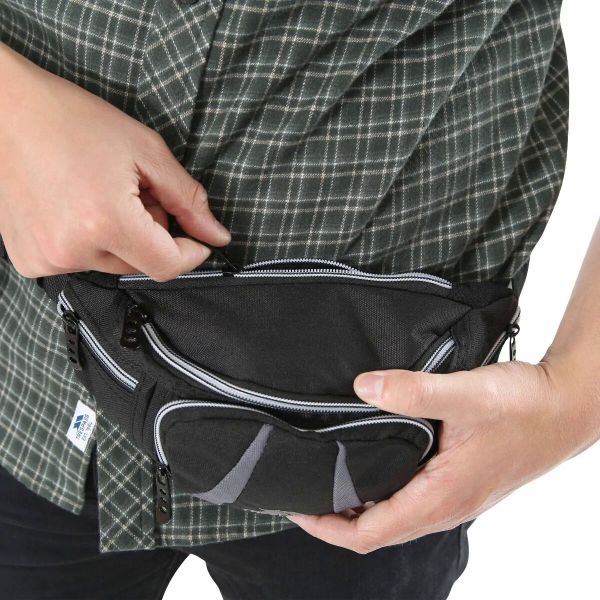 - "5 zippered pockets - With 5 zippered pockets, this waist bag offers multiple compartments for organized storage of small items such as keys, phone, wallet and more."