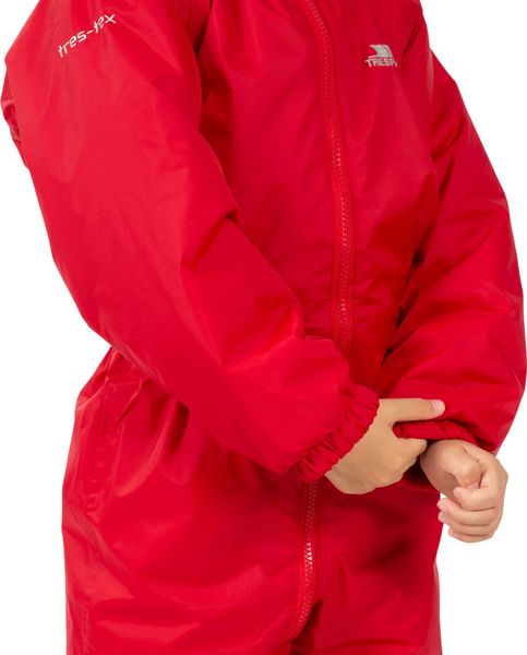 "The DripdropRainsuit from Trespass is the ideal companion for children who want to play outside even in bad weather. Thanks to its padded design, it offers excellent protection against wind and rain so that your child always stays warm and dry. The hood, which has been specially developed for easy handling, fully covers the head and protects against the wet. Elasticated cuffs and cuffs prevent rain from penetrating through gaps and the elasticated waist ensures a comfortable fit."