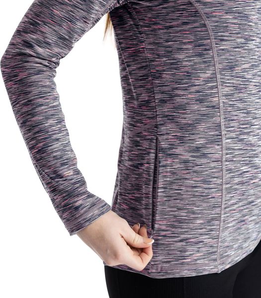 "A special highlight of the Edithshirt is the small zippered pocket on the back. This practical pocket allows you to store important small items safely and within easy reach while you are out and about. The 1/2 zip neckline and contrasting edging at the neck not only give the shirt a fashionable accent, but also ensure a comfortable fit without irritation"