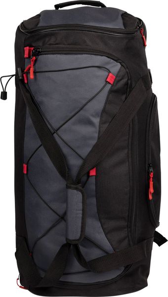 "The well thought-out design includes a spacious bottom compartment that keeps your luggage organized. The practical carryand pull handle makes transportation easier, while adjustable tension straps hold your load securely in place. For added versatility, you can attach additional equipment or clothing to the bag with the bungeerope. The front pocket provides quick access to important items so you can stay organized on the go."