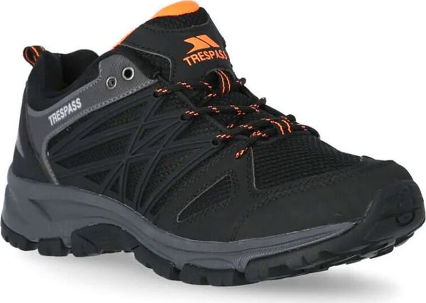 "The Fisk men'strail shoe from Trespass is the ideal companion for anyone who likes to hike in comfort and safety. With its low shaft height, it offers optimum freedom of movement and is perfect for long hikes. The robust construction includes a durable traction outsole that provides secure grip even on uneven terrainu00e4nde"