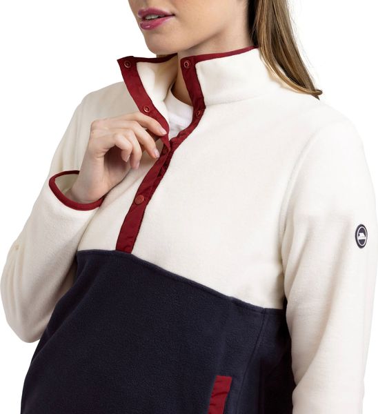 "With stylish contrastpanels, the fleece adds a fashionable accent and brings color to your outdoorwardrobe. The practical pockets offer plenty of space for your most important items that you need to have to hand quickly when you're out and about. The snap front opening makes it easy to put on and take off, while the contrasting bindings and the badge on the sleeve give the fleece a special touch."