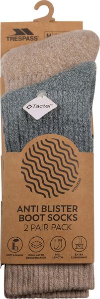 "Made from a premium cotton blend, these mid-length boot socks offer a cushioned sole and foot support and ankle support for optimum support and comfort. Trust in the quality of Trespass and give your feet the best they deserve"