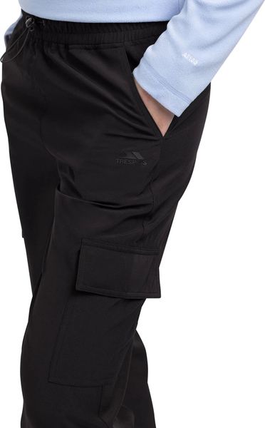 "With several pocket options, including two side pockets and two patch pockets with flaps, the Halfwaytrousers offer enough storage space for all your essentials. The elasticated hem not only provides a fashionable accent, but also keeps the trousers securely in place during intensive outdoor activities. The discreet Trespass logo on the front and the Duoskin print on the back underline the sporty design of these versatile trousers"