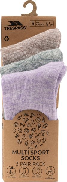 "Discover the ultimate comfort for your feet with the Trespass Helvellyn socks. These socks are made from a high quality cotton blend for softness and breathability. Perfect for everyday wear and leisure activities, they not only offer a comfortable feel, but also stylish versatility. Thanks to the practical 3pair pack, you always have a fresh pair to hand, making them an ideal choice for every day"