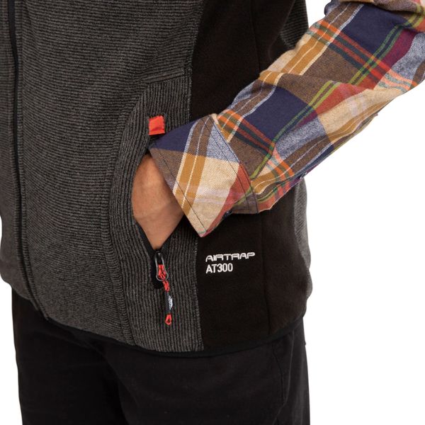 "Functional fleece vest with ribbed effect and black polar fleece side panels for warmth and style."