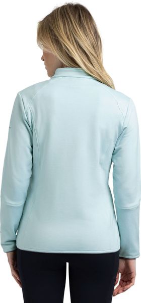 "Soft, flexible women's fleece with full-length zipper and storm flap for optimum comfort and protection."