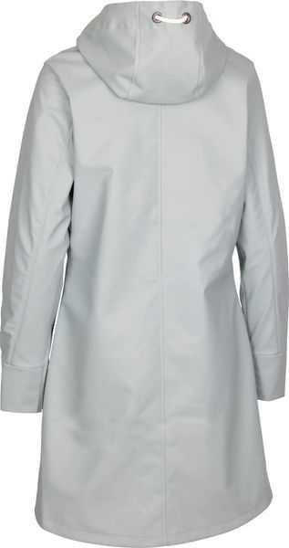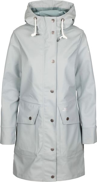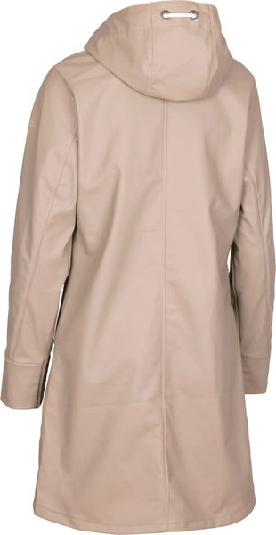 "Stylish waterproof women's jacket with adjustable hood, ideal protection thanks to storm flap and longer length."