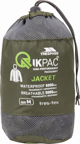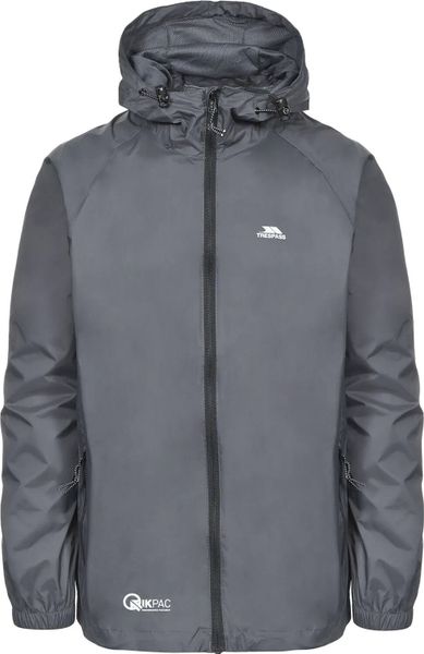 "The Qikpac Jacket from Trespass is the ideal choice for anyone who wants to combine functionality and style in one jacket. This unisex-Shell jacket offers optimum protection in any weather. Thanks to the adjustable, attached hood and fully elasticated cuffs, you are perfectly protected against wind and rain. The jacket is waterproof up to 5000mm, breathable up to 5000mvp and windproof, so you can feel comfortable in any activity."
