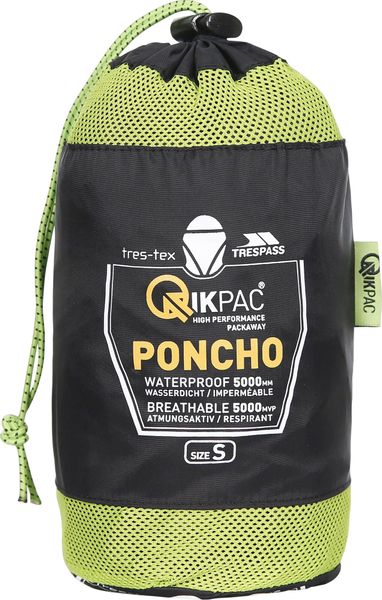 "The waterproof unisexponcho Qikpac from Trespass is the ideal solution for staying stylish and dry in any weather. Whether hiking, cycling or strolling around town, this poncho provides reliable protection from the rain and offers a comfortable fit. The adjustable hood provides additional protection and can be perfectly adjusted, while the reflective details ensure increased visibility in low light conditions."