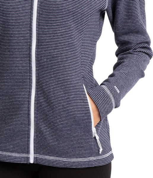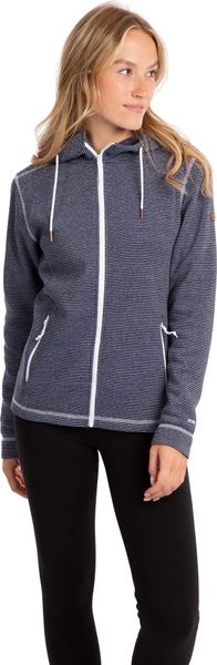 "The women's "Rootless" fleece from Trespass combines warmth and style and is the perfect choice for the modern woman". Made from 100% polyester, this fleece offers a soft and cozy feel and high durability. The striped marl fleece with a brushed back ensures a pleasant skin feel and additional warmth, while the full-length contrasting front zip and inner linings provide additional comfort and protection."