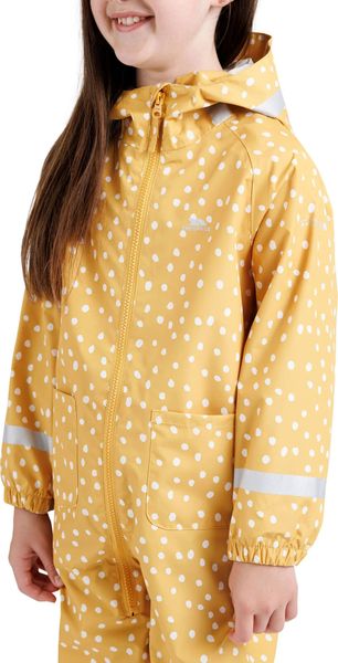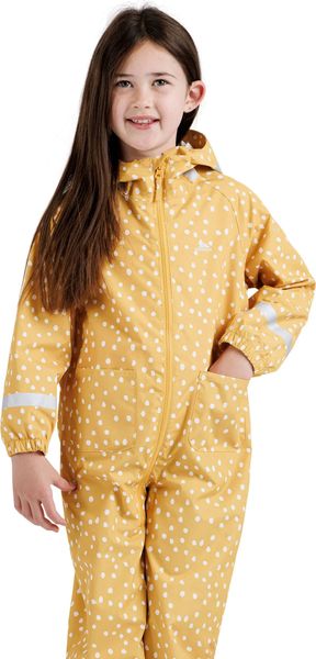 "The Trespass Showery rain suit for toddlers is the perfect choice to keep your child stylish and dry whatever the weather. This one-piece comes in three vibrant all-over print options and one solid color option to suit all tastes. With a waterproof rating of 2000mm and windproof properties, the Showery is ideal for rainy and windy days."