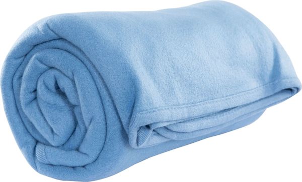 "Lightweight, warm fleece blanket with pack-away pocket, ideal for camping, traveling and leisure activities."