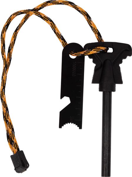"Versatile fire starter with bottle opener and luminous cord for maximum safety and functionality when camping."