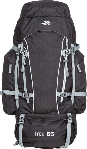 "The Trek 66 from Trespass is the ideal companion for anyone who likes to be out and about in nature. With an impressive capacity of 66 liters, this backpack offers enough space for all your equipment, be it for an extended hike or a multi-day adventure. Thanks to the waterproof properties and the robust PVC coating, the contents remain dry and safe even in adverse weather conditions."