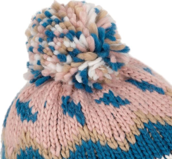 "Patterned knitted hat with pom-pom and fleece lining for warm and stylish winter days."