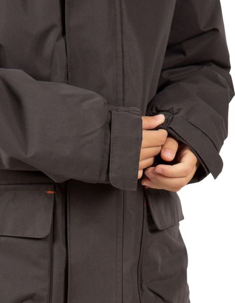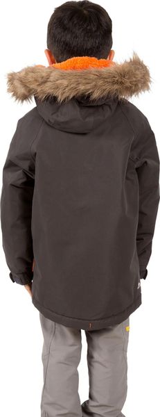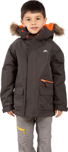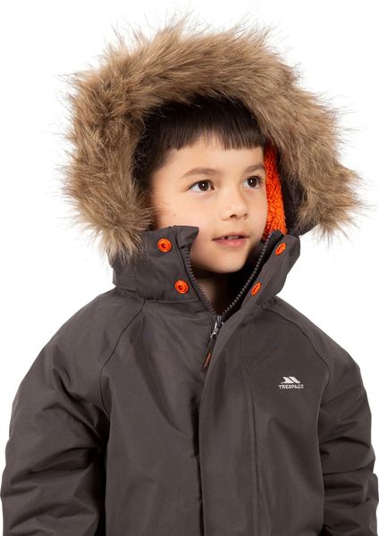 "The waterproof parkajacket Upbeat by Trespass is the ideal companion for young adventurers who want to be out and about in adverse weather conditions. Made from a robust PVC-Hu00fclle made from 100% polyestermicrofiber, it offers reliable protection from rain and wind. The interior is partially lined with Sherpafleece for cozy warmth without restricting freedom of movement. The detachable hood with fur trim not only gives the jacket a stylish look, but also offers additional protection in stormy weather."