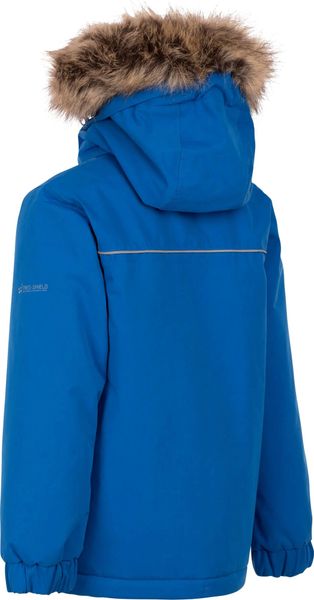 "The Trespass boys' rain jacket Upsider is the perfect choice for young adventurers who don't want to miss out on stylish clothing even in bad weather. With an impressive 5000 mm waterproof rating, this jacket offers excellent protection from rain and wind, while taped seams guarantee additional protection from the elements. The padded construction ensures that your child stays warm even on colder days"
