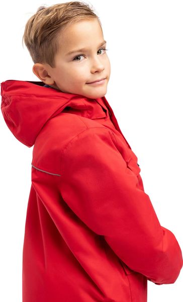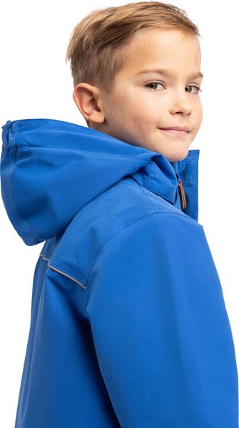 "Waterproof, stylish boys' jacket with detachable hood, reflective details and practical pockets for outdoor adventures."