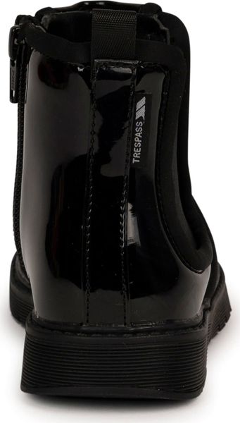 "The Ziya Chelseaboots for kids from Trespass are the ideal choice for little adventurers who value both style and functionality. The robust upper material made of patent PU is not only hard-wearing but also wear-resistant, making these boots a durable companion for all outdooractivities. Thanks to the practical zipper on the inside, children can easily take the boots on and off, making it easier to start any adventure."