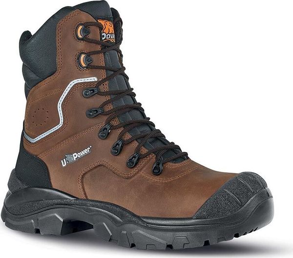 "Discover the Calgary UK S S3S FO safety boot from U-Power, specially designed for demanding work environments. This boot is part of the innovative Rock&Roll line and offers an impressive combination of safety and comfort. Made from water-repellent Pull-Up leather, this boot is not only robust, but also stylish and durable"