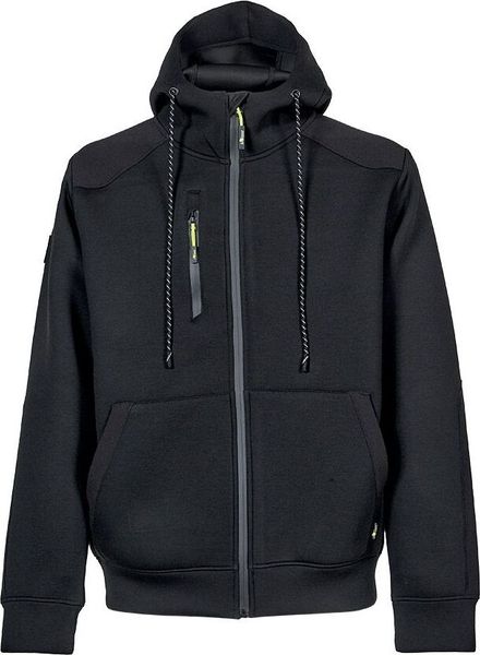 "Practical details such as two front pockets and a Napoleon pocket with zipper provide plenty of storage space for tools or important items that you always want to have to hand at work. The contrasting-colored zips and modern inserts on the shoulders and elbows not only give the hoody a sporty look, but also increase its durability in high-wear areas."