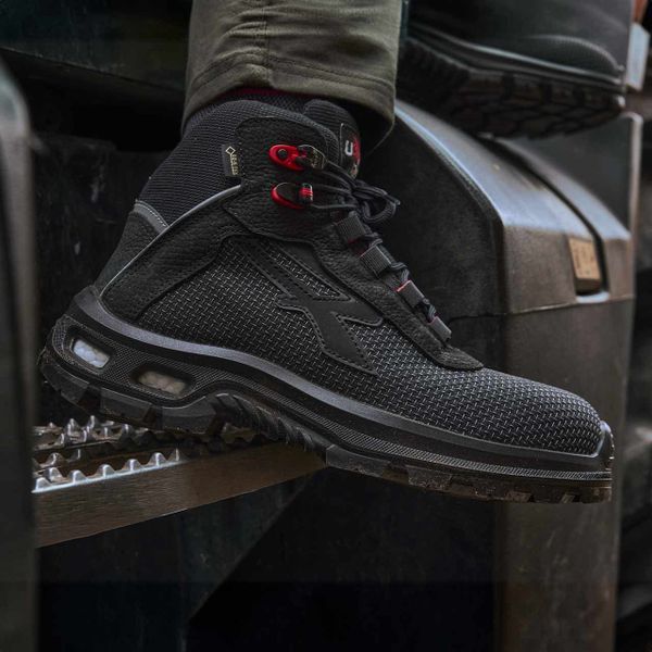"The Domination S S7S CI FO from U-Power is the ideal safety shoe for demanding working environments. This high-cut shoe comes from the renowned Red Over line and offers exceptional durability and comfort thanks to its highly abrasion-resistant PUTEKu00ae PLUS upper and milled natural nubuck. The water-repellent Gore-Tex lining ensures that your feet stay dry even in wet conditions, while the composite toe cap offers optimum protection without unnecessarily increasing the weightu00f6."