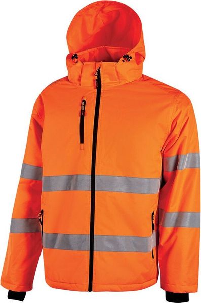 "The reflective stripes on the torso and sleeves ensure additional safety and increase your visibility in poor light conditions. The central zipper and adjustable, detachable hood allow flexible adjustment to changing weather conditions. Elastic knitted cuffs on the sleeves prevent wind and cold from penetrating, which further increases comfort."