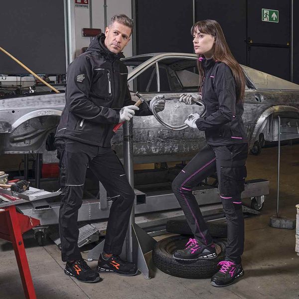 "Modern, mid-height safety shoe with innovative energy return and comprehensive protection for dynamic working environments."