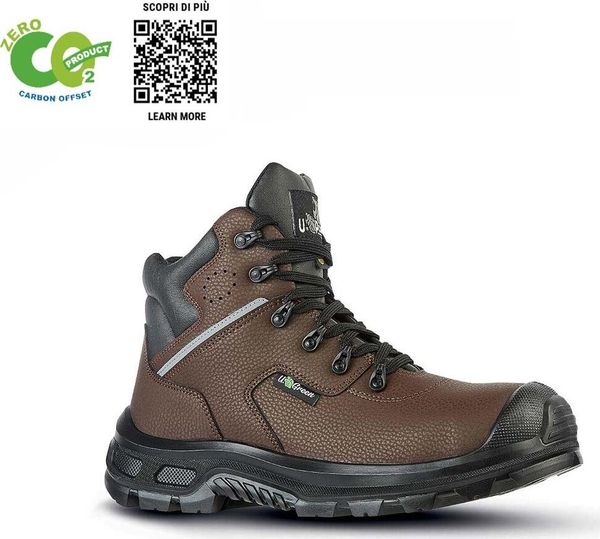 "The Lancaster UK safety shoe from U-Power combines safety, comfort and environmental sustainability in one outstanding product. This green work shoe is made from renewable and recycled materials to meet the requirements of environmentally conscious production. Equipped with the ultra-light AirToe Composite toe cap, it offers optimum protection for toes and forefoot. The additional PU-u00dcupper cap ensures increased resistanceu00e4highness."