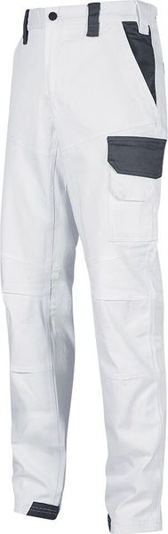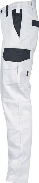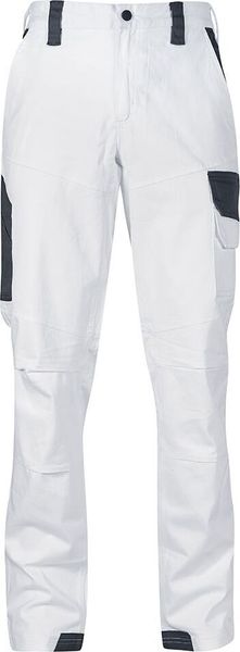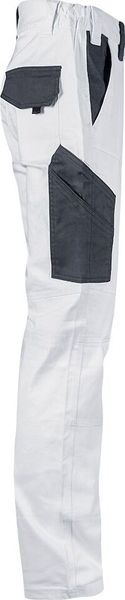 "The design of the Saloniccotrousers is complemented by a reinforced, abrasion-resistant leg hem for added durability. The central fastening with zip and rubberized button ensures easy handling and additional safety. These work trousers are washable at 40u00b0 and therefore easy to care for. Whether for painters or drywallers, the Salonicco trousers are the ideal choice for anyone looking for robust, comfortable and versatile workwear."