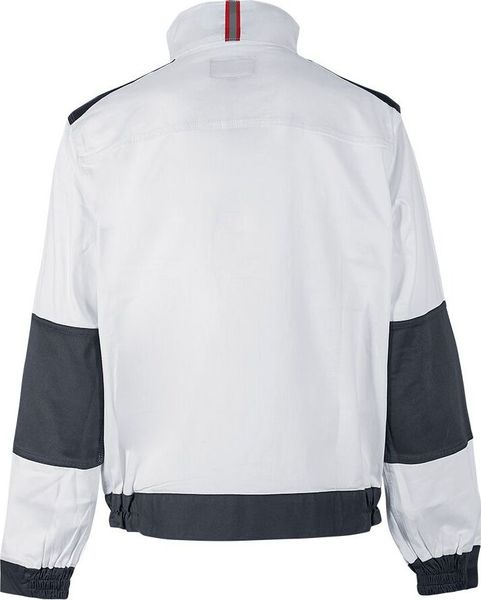 "A special highlight is the plastic ring, which serves as a holder for the badge u2013 an indispensable detail for anyone who is on the move a lotu2013. The press studs on the sleeves allow for individual adjustment, while the central zipper and elasticated hem ensure a comfortable fit and optimum protection. The jacket is easily washable at 40°C and is ideal for painters and anyone looking for a reliable, hard-wearing and fashionable work jacket"