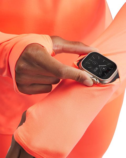 - Integrated thumbholes prevent the sleeves from slipping, with a practical watch opening on the left wrist