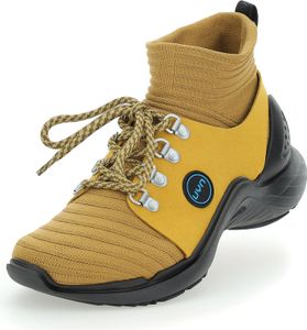 - The upper material is worked out of the sock with an exclusive production technique: completely without seams, highly breathable, water repellent and with a wrap-around fit.