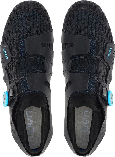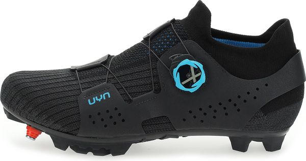 - ONE-PIECE 3D KNIT UPPER - Seamless construction for a sock-like fit. No pressure points, no skin irritation, absolute comfort. - ULTRA-BREATHABLE - Perforated outer layer for unparalleled ventilation. The foot is surrounded by a constant flow of air. - EXOFRAME - Anatomically shaped to keep the foot stable and maximize power transmission. Exoframe is made by recycling the super strong and flexible interlayer used to make laminated glass in the automotive industry. - STABILITY FRAME - Semi-rigid and adaptable structure between the two layers of the upper. Improves lateral stability and prevents the foot from rolling in the shoe. - MICRO-TUNE CLOSING SYSTEM - With CLICK-TO-FIT technology for a millimeter-precise fit - MADE WITH NATEX - The inner layer of your UYN NAKED shoe is made of NATEX. This exclusive, 100% bio-based yarn is particularly light and reduces weight by 25%. NATEX dries 50% faster than conventional nylon and offers a bacteriostatic effect that minimizes odor. - HEMP INSOLE - helps keep your foot perfectly ventilated - EXTREMELY DURABLE AND WATER RESISTANT - The outer layer of the upper is made from the special HI-FORCE yarn, which is characterized by high strength, wear resistance and tear resistance. - LIQUID RUBBER TOE AND HEEL PROTECTORS - Abrasion and tear resistant. - MTB Outsole - Carbon fiber reinforced nylon platform, durable and lightweight, for high performance. - Technical rubber tread for maximum grip and safety when walking. - Two removable studs in the forefoot area.