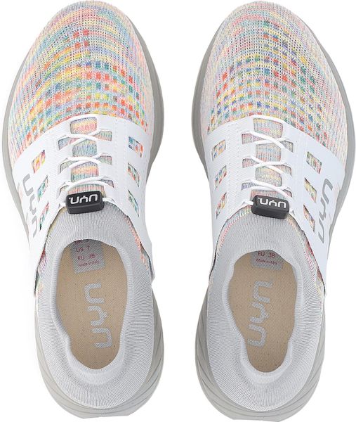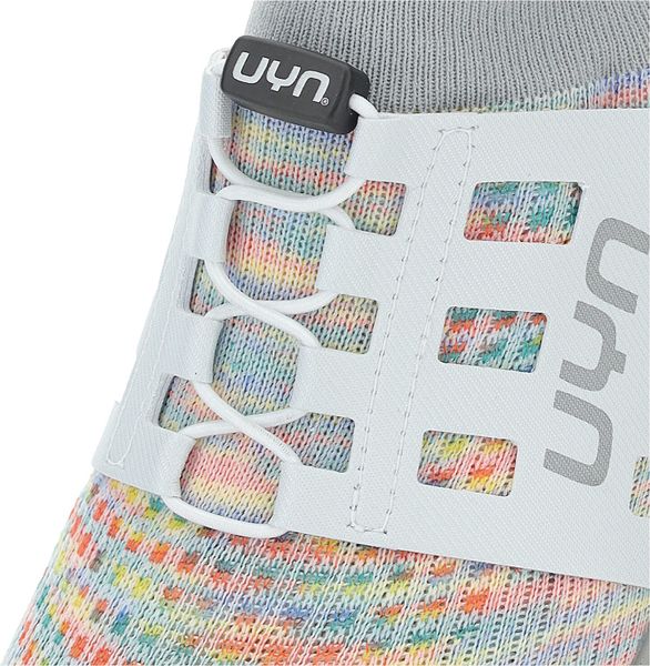 The comfort of a sock, the style of a trendy shoe UYN RAINBOW TUNE is the model for people who do not want to go unnoticed in the summer. Its soft and elastic sock-derived structure is made of different colored yarns that give the shoe a modern and fashionable look. The inner part of the upper is made of NATEX, the exclusive high-performance 100% bio-based fiber that makes this model extremely lightweight, highly breathable and practical even on long days. The REBOUND SHIELD ensures great flexibility of the UYN RAINBOW TUNE and provides additional protection against water penetration in the most exposed areas. The TUNE LACES system is anchored directly to the sole and provides optimal traction.