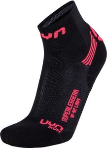 The breathable Superleggera running socks from UYN® are so light that you can hardly feel them. Nevertheless, they are full of functionality. Among other things, a compression increases the oxygen supply to the muscles, a special technology absorbs shocks. Its material Natex, nylon fibre on a 100 percent plant basis, is soft to the touch and dries extremely quickly.