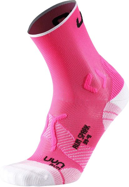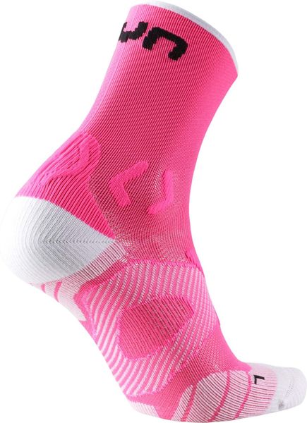"""Experience ""the ""ultimate ""running ""feeling ""with ""the ""Woman ""Runner's ""One ""Short ""Socks ""from ""Uyn. ""These ""innovative ""socks ""are ""specially ""designed ""for ""women ""and ""offer ""a ""perfect ""fit ""without ""the ""usual ""tightness ""in ""the ""calf ""thanks ""to ""the ""revolutionary ""Zerocuffu2122 ""technology. ""Improving ""blood ""circulation ""not ""only ""increases ""performance, ""but ""also ""minimizes ""the ""risk ""of ""swelling ""after ""intensive ""training ""sessions. ""The ""100% ""bio-based ""Natex ""fabric ""ensures ""rapid ""sweat ""absorption ""and ""keeps ""your ""feet ""pleasantly ""dry."