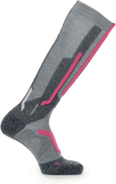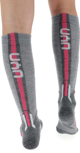 UYN Ski Merino Socks are a high-performance model made of merino wool, naturally insulating and anti-odor. Thanks to an exclusive production technique of UYN, merino wool is combined with FIBRESIST yarn, which ensures greater resistance. Three-dimensional protections in the strategic areas of the upper, shin, ankle and Achilles tendon absorb shock against the shoe; ergonomic design allows the sock to wrap around the foot and adapt to every movement without causing discomfort and abrasion.